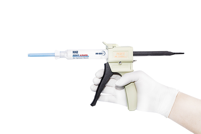 PERFIT A/RAPID es un material de impresión de silicona de baja viscosidad A que se utiliza para hacer impresiones del canal auditivo externo. Es ampliamente utilizado en la producción de audífonos, tapones para los oídos y otros productos para los oídos personalizados.